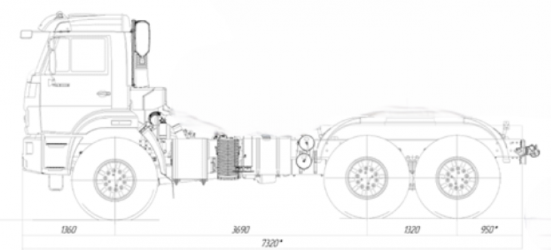 Шасси 6*4, длина рамы 5 970 мм, межосевое растояние мм, грузоподъемность 12 тонн