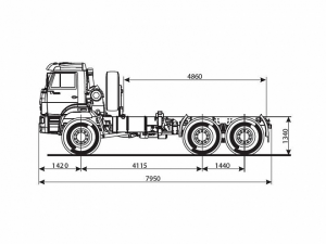 Шасси 6*4, длина рамы 5 970 мм, межосевое растояние мм, грузоподъемность 12 тонн